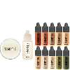 Temptu Pro Dura Tattoo Coverage Kit in Dark — комплект гипоаллергенных жидких материалов на спиртосодержащей основе, который используется визажистами для маскировки татуировок. Набор включает 10 цветов, которые позволяют качественно перекрыть тату, спиртовой разбавитель для них и пудру для финишного покрытия. При правильном уходе материал будет выполнять свои функции до 2-х дней, поскольку является влагоустойчивым. Название продукта говорит о том, что перед вами комплект тёмных оттенков. Особо востребованы эти материалы перед свадебными торжествами, в гримёрках театров и модных домов.