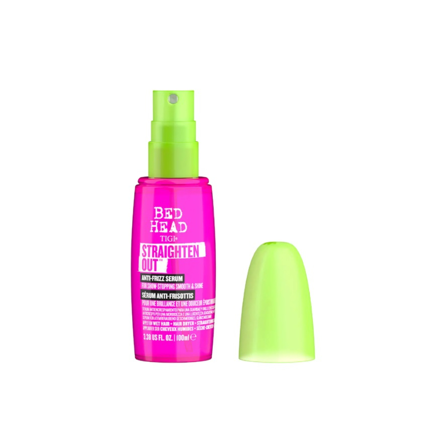 Избавьтесь от пушистости и завитков с помощью разглаживающей сыворотки Straighten Out Anti-frizz из коллекции TIGI Bed Head. Ультралегкая формула предназначена для нанесения на влажные волосы перед сушкой феном, поэтому она разработана для защиты от вредного воздействия тепловой укладки.